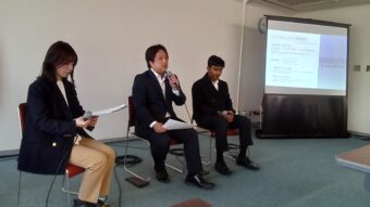 第1部は県内で働く外国人社員を招き、パネルディスカッションを行いました。業種や職歴の違う3名に、岐阜を選んだ理由や文化・言語の違いをどう乗り越えてきたのか等、働く側のリアルな声をうかがいました。