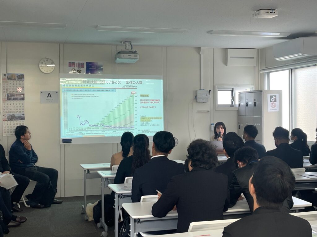 第1部では、建設業における外国人材雇用の実情と、2027年4月1日に施行予定の育成就労制度について行政書士が説明しました。